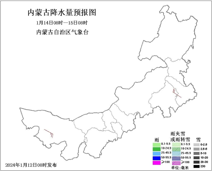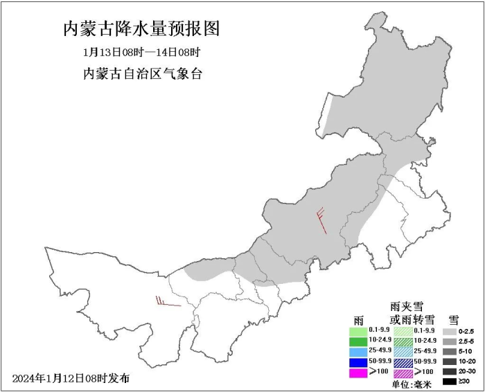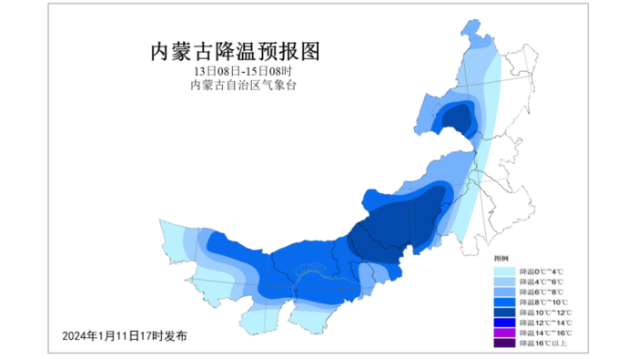 今天(1月12日)内蒙古大部暖意仍存,西中部大部及东部偏南局地最高气温仍处于1℃以上,阿拉善盟、乌海市等地最高气温超10℃。不过,明天随着新一轮冷空气的到来,内蒙古持续升温的局面被打破,全区大部气温明显下降,普降6~8℃,包头市东北部、乌兰察布市北部、锡林郭勒盟西中部和南部、呼伦贝尔市西南部部分地区降温10℃以上,多地还有大风相伴。同时,明日中东部大部还有降雪“叨扰”。公众要及时关注最新的天气预报预警信息,出行做好防风保暖措施,降雪区域还需注意道路湿滑结冰等现象对交通的不利影响。
