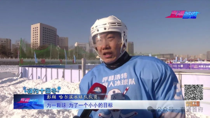 彭翔 哈尔滨冰球队队员:一帮年轻人都在这儿奔波,为一颗球,为了一个小小的目标,展现了个人和集体(风采)。重在的是参与,然后就是激情与速度,两国互相去学习。