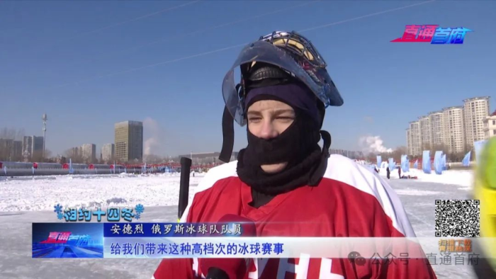 安德烈 俄罗斯冰球队队员:非常高兴来到呼和浩特,我们也去过满洲里,这是我们第二次来呼和浩特。我们感到了(热烈的)气氛,也非常感谢呼和浩特给我们带来这种高档次的冰球赛事。