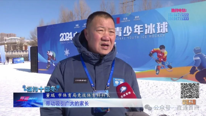董瑞 市体育局竞技体育科科长 :也是想通过这个冰球运动承办比赛以后,带动吸引广大的家长 和青少年运动员参与到这项运动中来,也是锻炼一下本土的裁判员队伍,包括体育系统内的工作人员服务意识。
