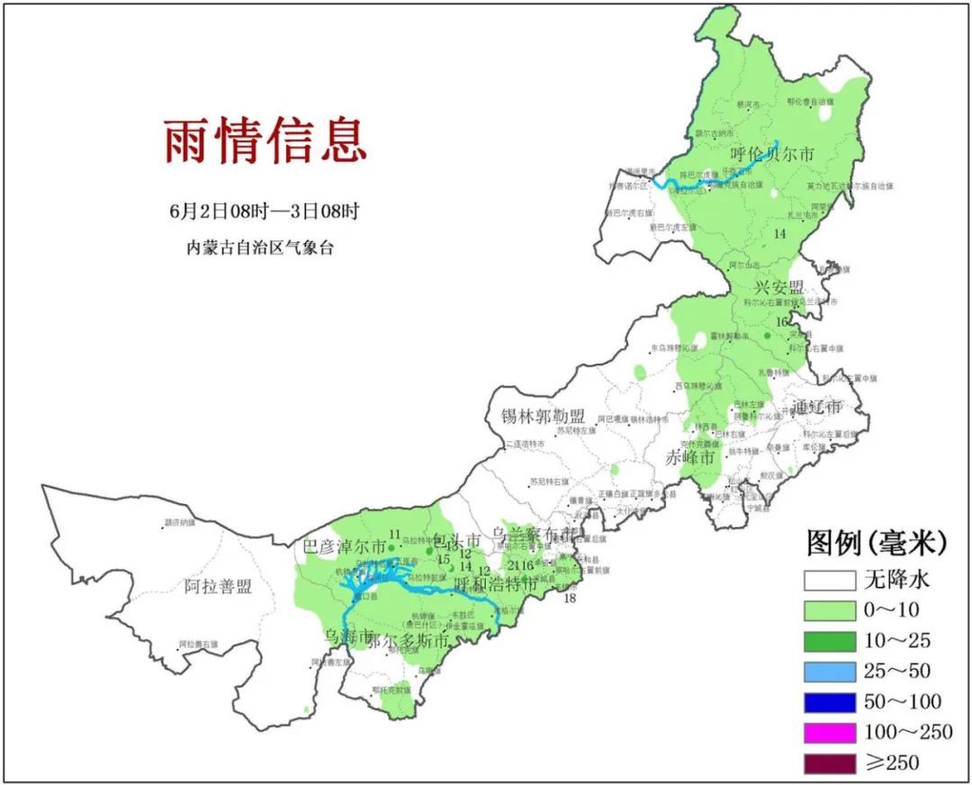 6月以来,冷暖空气继续在内蒙古上空交汇,导致天气阴晴不定,冷暖交替频繁。昨天(2日),全区的天气说阴就阴,大部地区迎来新一轮风雨过程。据内蒙古气象局最新资料显示,2日08时-3日08时,全区12个盟市的60个旗县出现降水,范围0.1~20.7毫米。降水主要出现在乌兰察布市、包头市、兴安盟。其中,7个旗县出现中雨,最大降雨量为乌兰察布市凉城蛮汉镇二龙什台,20.7毫米。