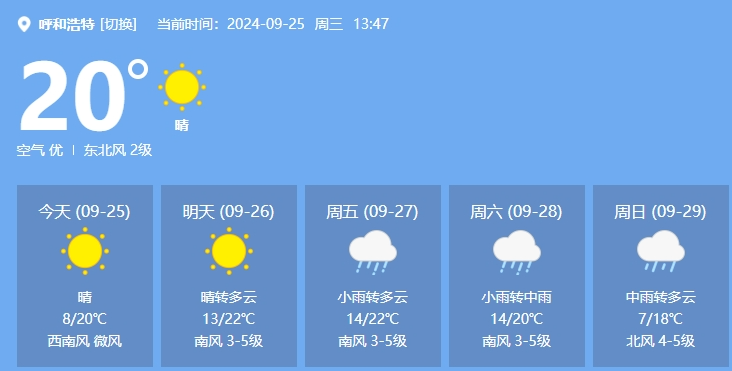 未来几天呼和浩特气温