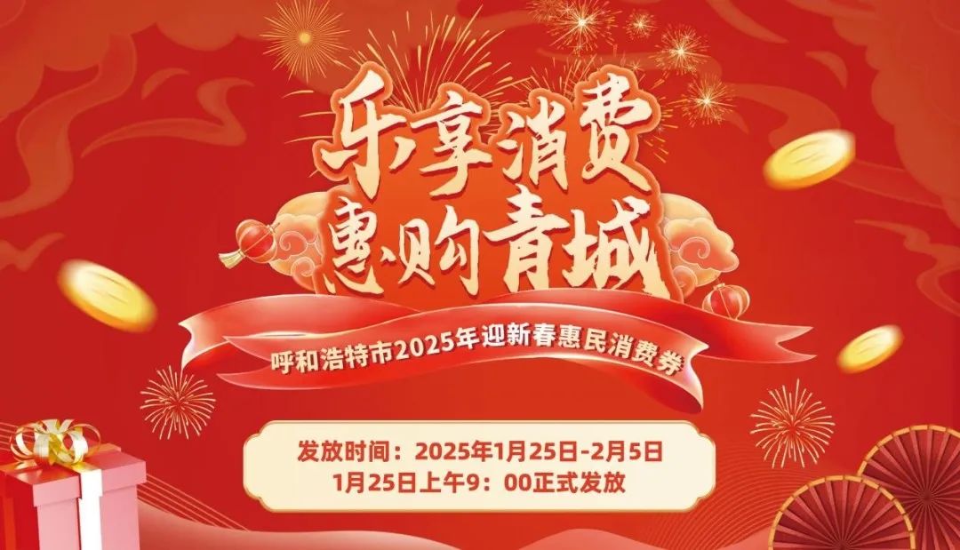 在新春佳节到来之际,为进一步丰富消费供给,激发市场活力,惠及广大消费者,营造欢乐祥和的节日氛围,1月25日上午9:00,乐享消费·惠购青城-呼和浩特市2025年迎新春惠民消费券开始发放。