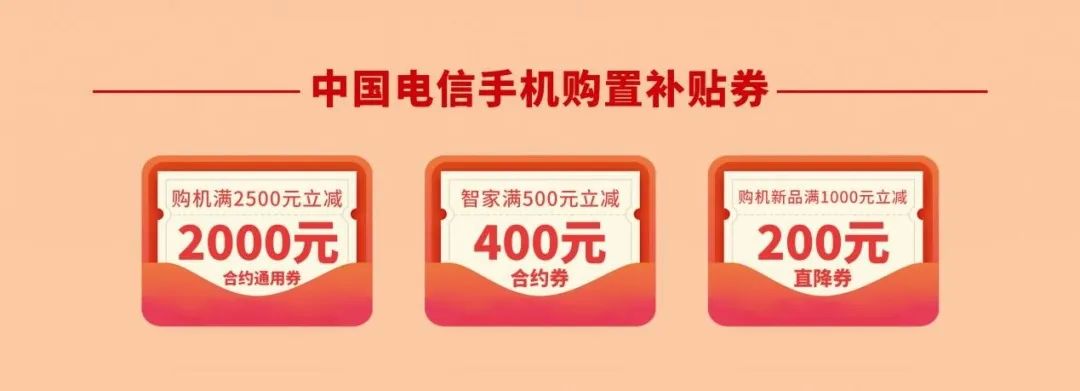 领用方式:个人消费者在中国电信指定参与活动的直营门店购买手机及相关产品时,通过扫“线下活动二维码”领取补贴券,付款时直接抵用。详情以企业实际活动为准。