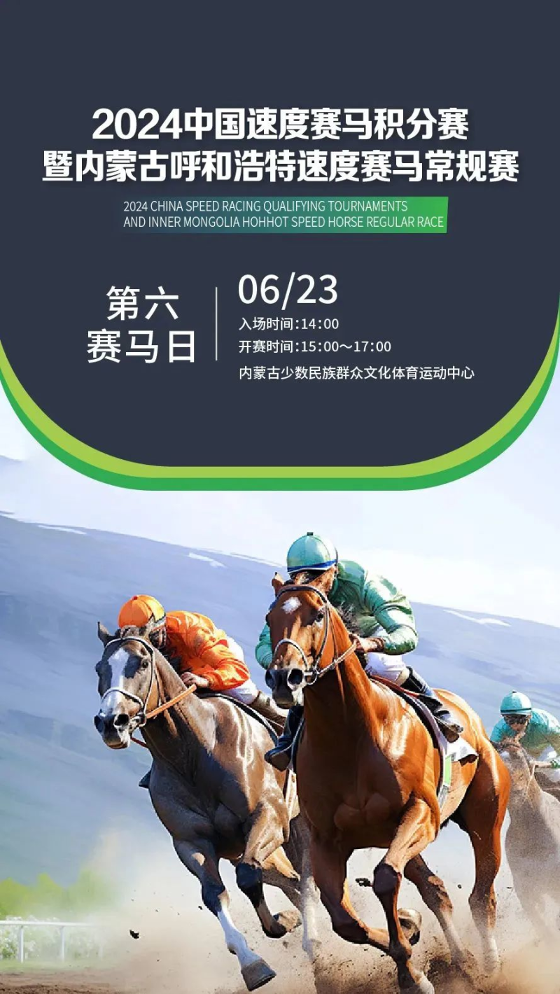 本周日(6月23日),中国速度赛马积分赛暨内蒙古呼和浩特速度赛马常规赛将迎来第六个赛马日。为吸引更多青年朋友关注赛马、参与赛马,本赛马日设定为“爱在敕勒川草原”主题赛马日。