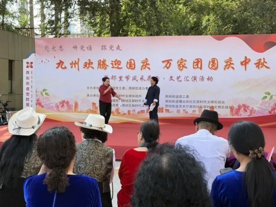 金秋送爽,丹桂飘香,明月寄情。这个十一不仅是中华人民共和国成立七十六周年的重要时刻,还与传统佳节中秋节相遇,双节同庆更添喜庆氛围。双节同庆之时,西街街道党工委、办事处、团工委联合西街街道新时代文明实践所、各社区新时代文明实践站开展了此次“九州欢腾迎国庆,万家团圆庆中秋”暨邻里节风采展示·文艺汇演活动。此次活动邀请了国有企业退休社会化管理人员、各社区的爱心党员及群众,采用风采展示与文艺汇演相结合的方式,为参与者搭建了一个互动交流、展现风貌的平台。