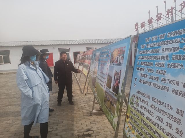 调研组先后对野马图村、面铺窑村、水磨村等有一定旅游产业基础的村庄进行了全面调研。特别是面铺窑村生态观光采摘旅游综合体项目, 通过雪菊茶种植采摘以及红辣椒订单式种植销售等方式,充分发挥出农村新型经营主体作用,搭建贫困群众增收致富平台,助推村级集体经济不断发展壮大。调研组对面铺窑村大胆探索,积极发展扶贫产业给予肯定,并推荐该项目申报2020年自治区旅游产业扶贫示范项目。