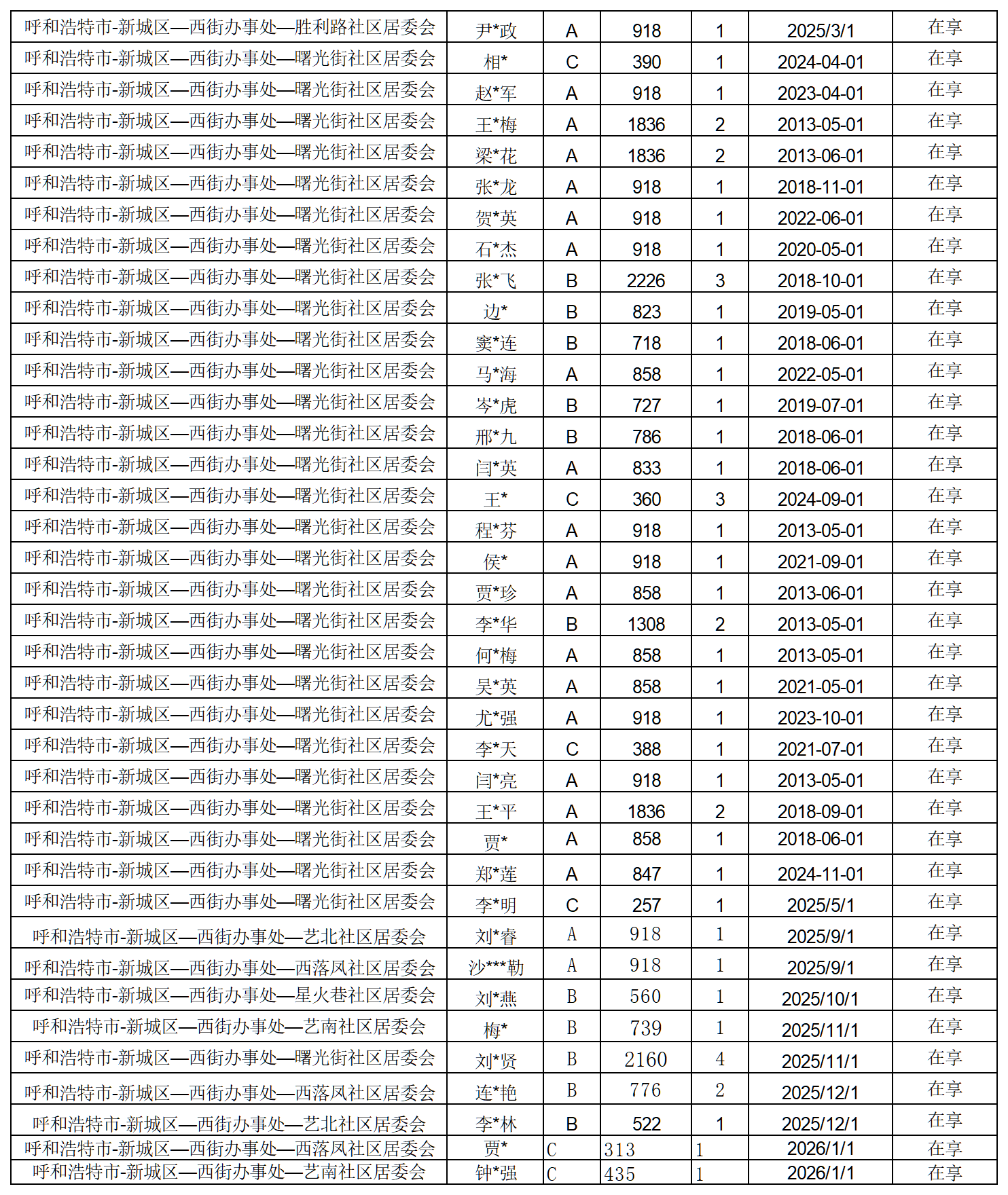 新城区西街街道办事处2026年2月最低生活保障人员补贴发放情况