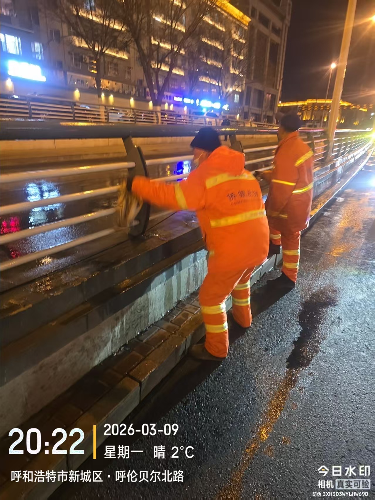 为深入落实春季环境卫生“大起底、大整治”专项行动要求,持续提升城区环境卫生品质,切实做好环卫保障服务,3月9日晚,新城区环境卫生服务中心精心部署、精准发力,组织一线保洁人员,调配高温冲洗车辆,对呼伦贝尔北路人行便道及公铁立交桥开展全方位、精细化冲洗作业,以“绣花”功夫擦亮城市容颜,用实干担当守护群众出行环境。