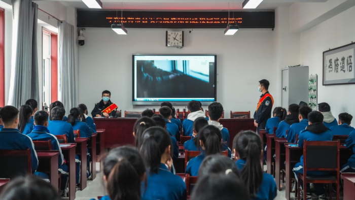 宣讲现场,同学们参与热情高涨,课堂气氛热烈。大队队员以通俗易懂的语言,通过发放反恐宣传册、播放视频、问题抢答等方式对如何识别暴恐嫌疑人、发生暴恐袭击时如何躲避等相关知识进行了讲解。