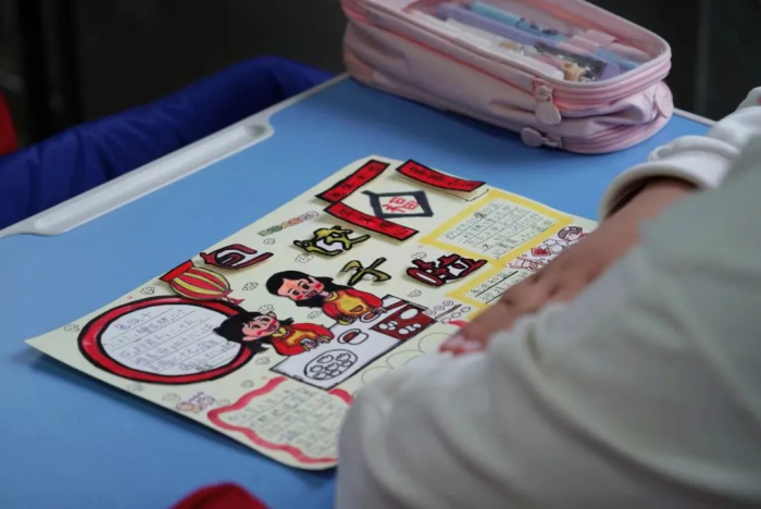 “春晚对传统文化的诠释与创意融合、年味十足的民俗活动,这个春节有太多充满'文化味'的内容了。开学第一课,我带领同学们制作手抄报并交换阅读,希望用这样的形式让他们爱上语文,同时进一步弘扬中华优秀传统文化。”吴娜说。