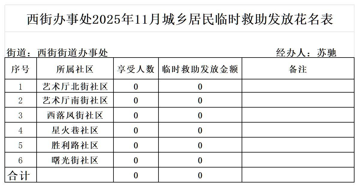 新城区西街街道办事处2025年11月城乡临时救助补贴发放情况