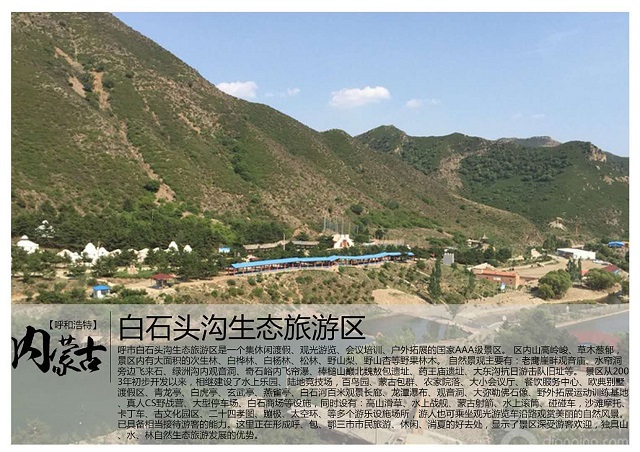 新中国成立初,呼和浩特市就把恢复大青山森林生态、绿化大青山作为林业建设重点。先后建立了大青山、古路板、乌素图3个国营林场。大青山国营林场白石头沟林区较早实行封山育林,效果显著,有效地控制了水土流失,涵养了水源。白石头沟旅游区,面积28平方公里,是国家“三北"防护林、京津风沙源治理工程、大青山前坡荒山治理工程、退耕还林还草的重要工程,是开发利用荒山集旅游、荒山生活治理、体育文化、动植物保护和养殖为一体的综合项目。主景区植被覆盖率达55%以上,阴坡的植物覆盖率达75%以上,在大青山区域屈指可数。2000年成立大青山国家级自然保护区,位于包头市、呼和浩特市至乌兰察布市卓资县一线以北的阴山山地。