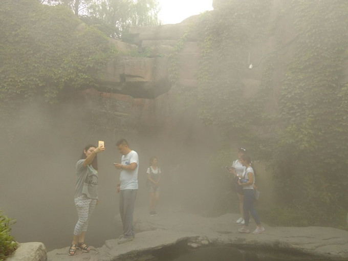 人们不期而遇的步伐、眼神和享受,心照不宣,现在人们重视外出活动,与山相随,与花共舞,与自然接触,如心灵瞬间注入水珠一般叮咚作响,无限的遐思似乎要占领整个世界,听:人工假山中悠悠的呐喊声和飞流直下的瀑布遥相呼应着,伴着一股股的雾气、人流,如入仙境一般,云里雾里。看:公园里站在花丛中的微笑与微笑相互对视着,静谧中跳动的旋律和人在游途中温馨的场景交织在一起,构成了一幅美丽的画卷。