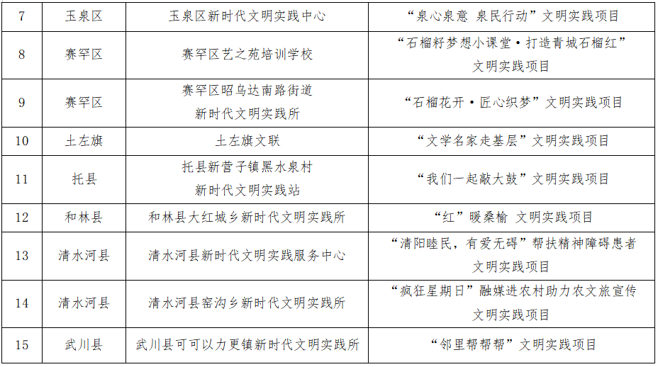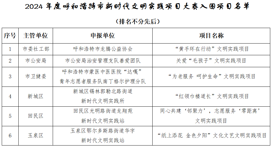 2024年度呼和浩特市新时代文明实践项目大赛入围项目公示