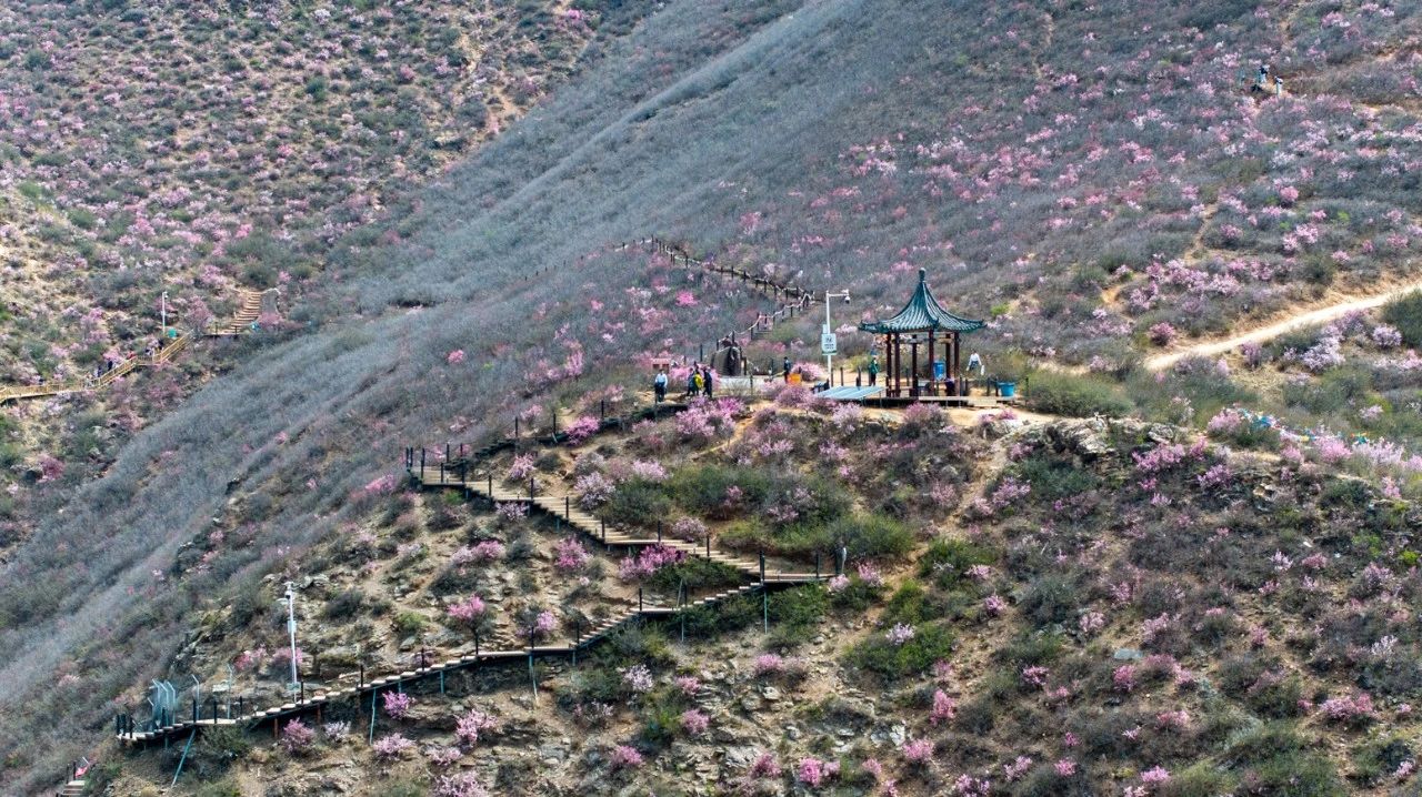 游客在乌素图杏花谷打卡拍照