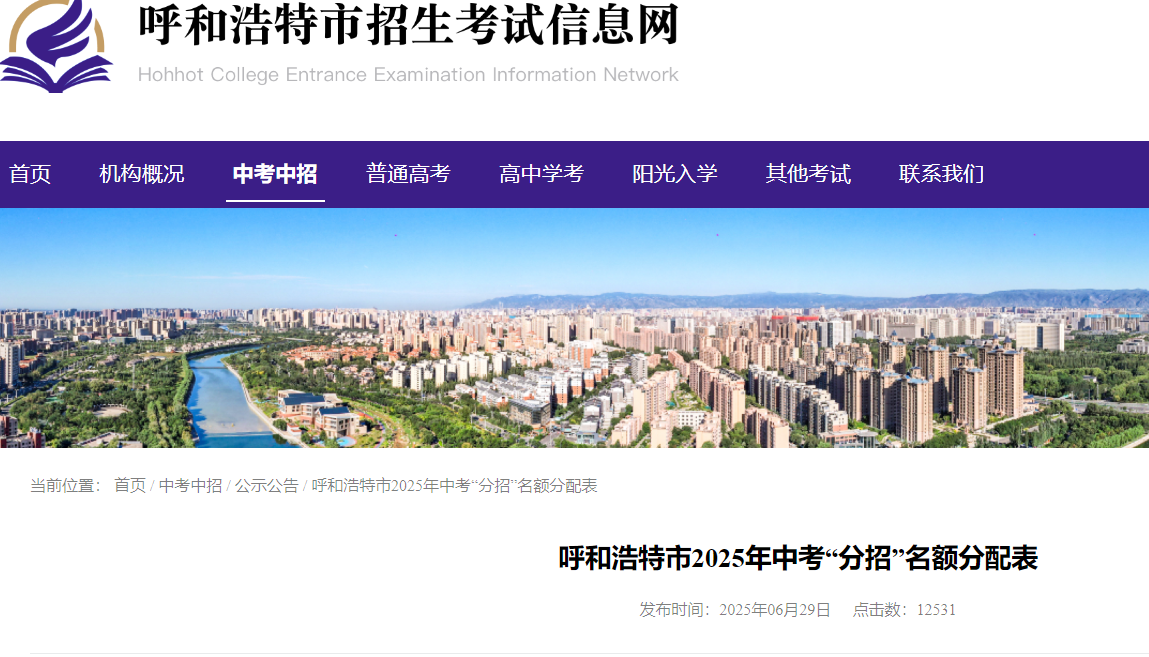 呼和浩特市招生考试信息网发布