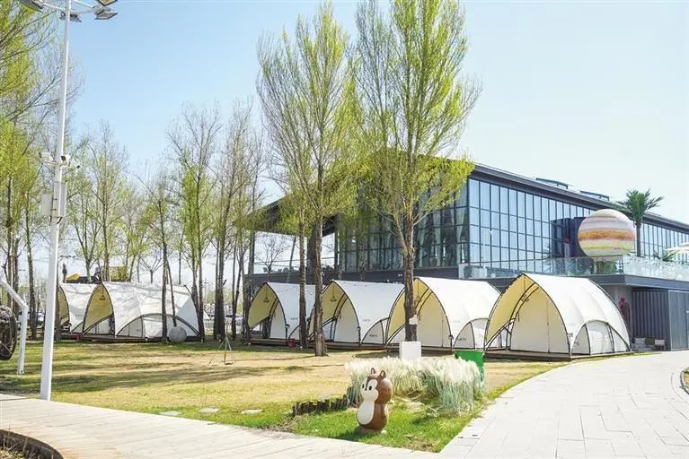 营地分为帐篷天幕区、种植采摘区、萌宠区、儿童娱乐区等多个功能区域。每个营位都配置了独立电源,同时还提供装备、炊具租赁,烧烤食材套餐及餐饮服务。在这里,孩子们可以在萌宠区与可爱小动物亲密互动,在儿童娱乐区尽情撒欢;大人们则可以在种植采摘区体验农耕乐趣,或是在帐篷边支起烧烤架,享受美食与自然的双重馈赠。营地周边的湿地景观,更是为游客提供了漫步、观赏的好去处。