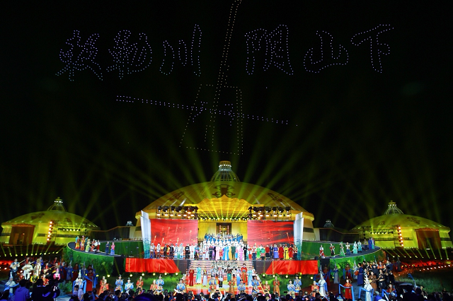敕勒川生态草原不仅是生态屏障,更融合了休闲旅游、文化体验、会议研学等功能。2025年夏季,敕勒川草原成为呼和浩特系列文旅活动的重要会场。7月3日,2025年中国原生民歌节的开幕演出在呼和浩特敕勒川草原盛大开启,这不仅是一场音乐盛会,更是一次文化对话。本次民歌节参演人数近400人,年纪最大的85岁,最小的仅9岁,充分展现艺术的代际传承;江南水乡的高邮民歌与蒙古族长调在草原上交相辉映,诠释“天似穹庐”下的多元。会场旁,全国最大的蒙古包——呼和塔拉会议中心巍然矗立,与远处的阴山轮廓相映成趣,仿佛《敕勒歌》中的“穹庐”再现。