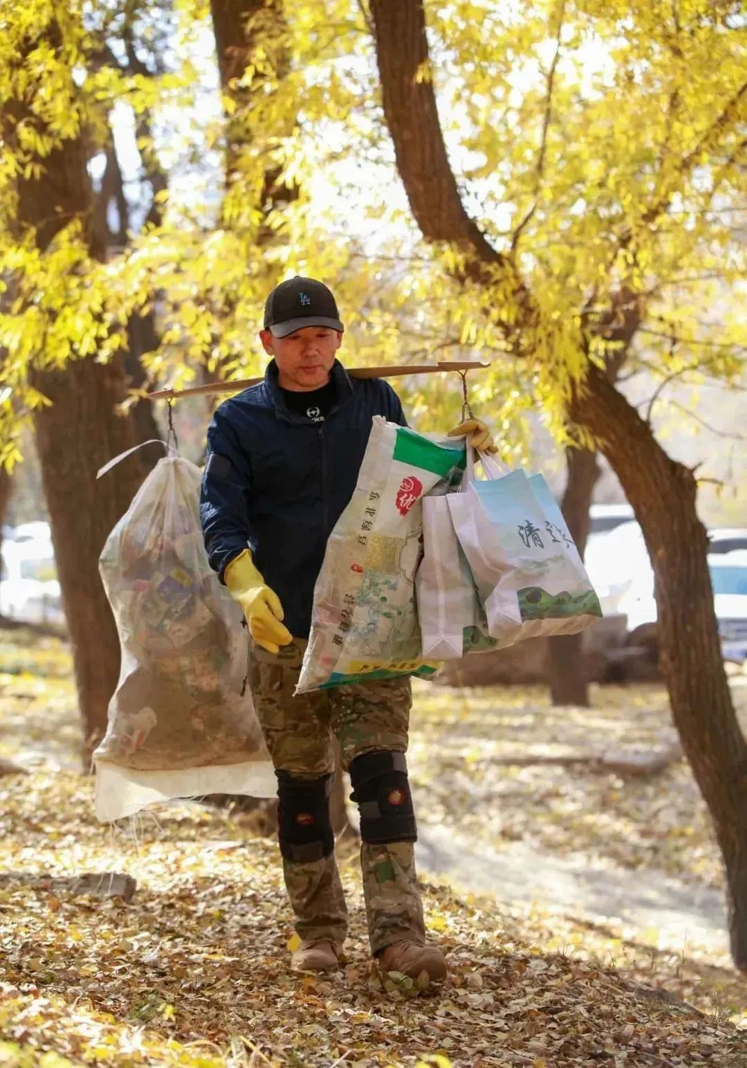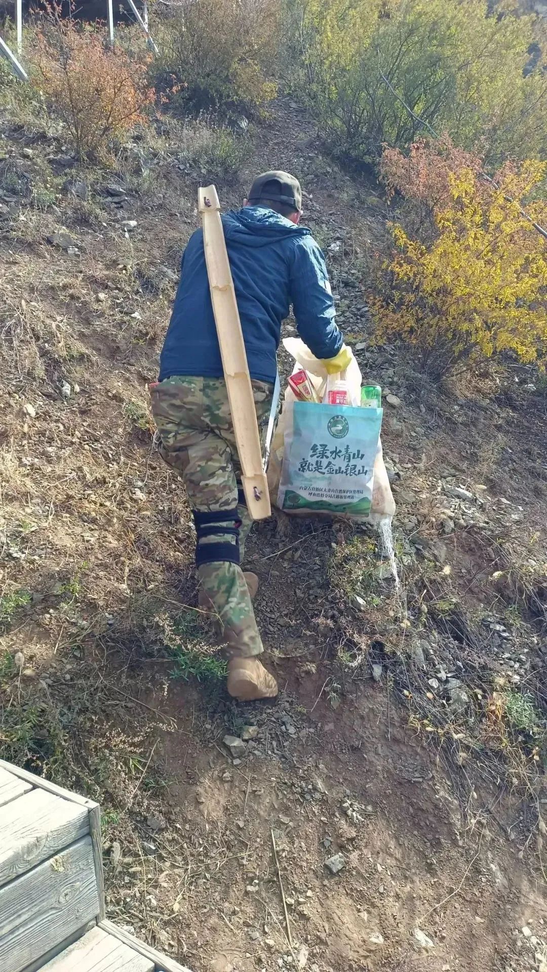 “我们有一次在奎素西沟,当时我是担了有50斤的垃圾,走的时候不小心把脚崴了,好不容易捡那么多,又不想扔在沟里面,只能是咬着牙坚持了三公里走到车那边,从那以后我就保证每次捡垃圾不超过40斤的重量。”