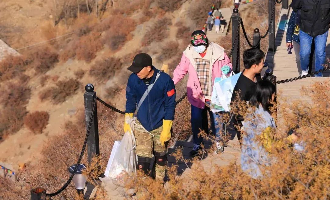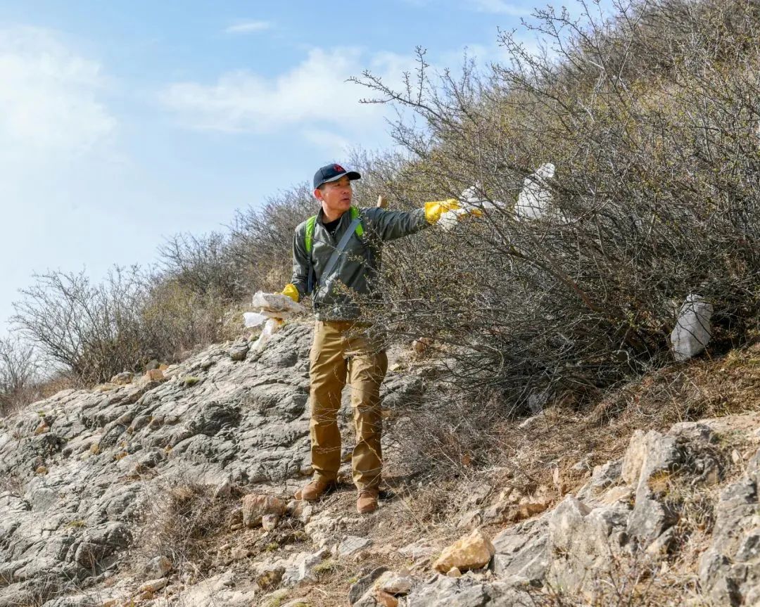 穿梭于山林间捡拾垃圾