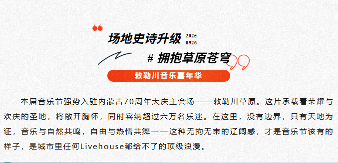 主舞台以总面积超2000平方米的宏伟规模屹立草原,核心视觉由超过2400平方米的高清LED大屏构筑,配合上千台电脑灯精准编排,引入阿酷司(d&b audiotechnik)国际顶级音响系统,确保每一位观众,无论在哪个角落,都能享受到纤毫毕现、澎湃震撼的顶级音质。