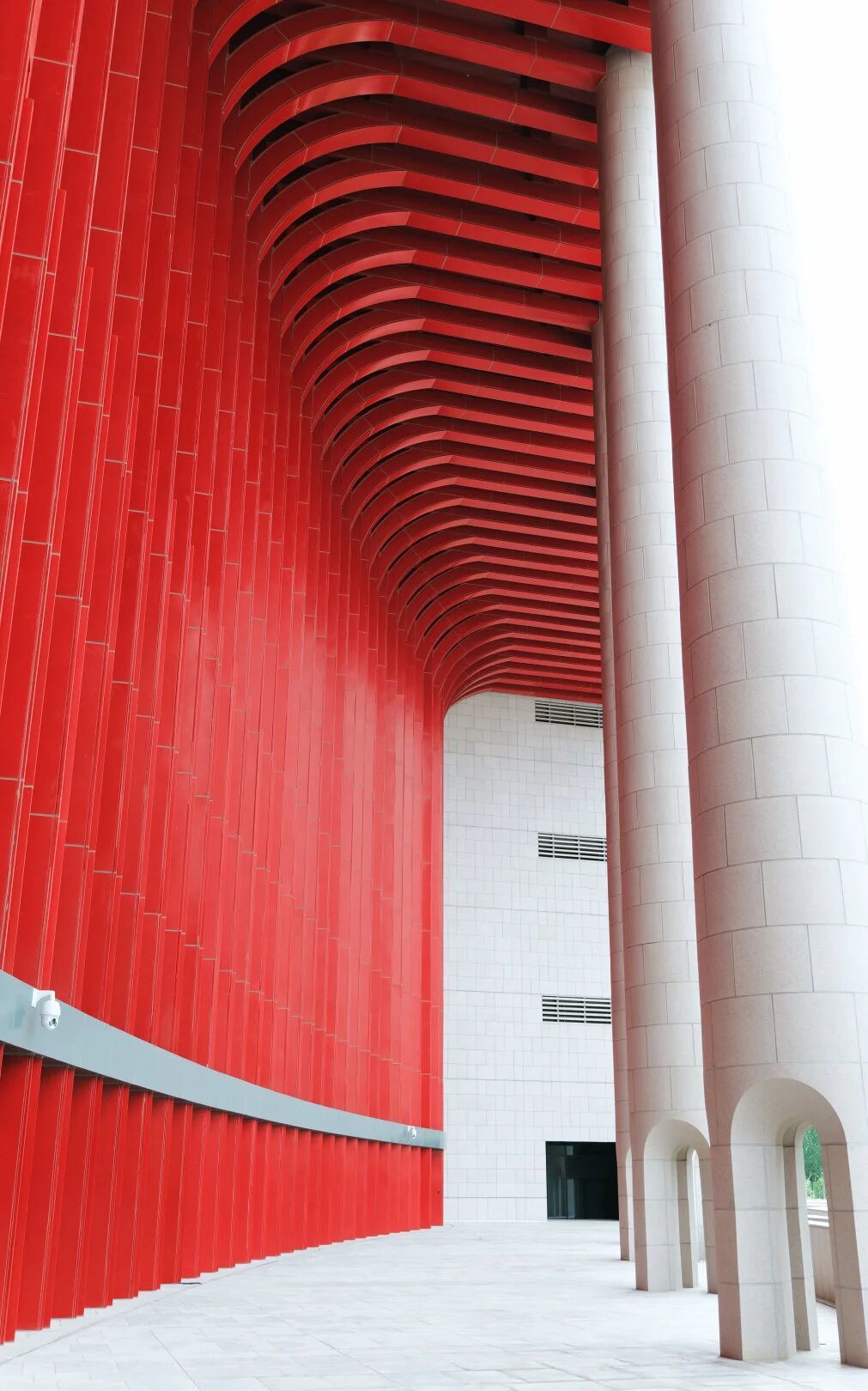 内蒙古博物院的外观同样值得记录。建筑主体以红色为主,造型现代大气,在蓝天的映衬下格外醒目。从不同角度拍摄,能捕捉到建筑线条与红色块面的组合,既有设计感又充满力量。