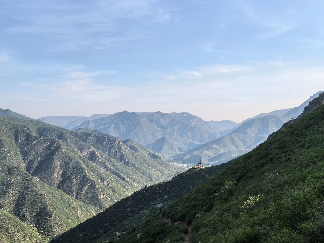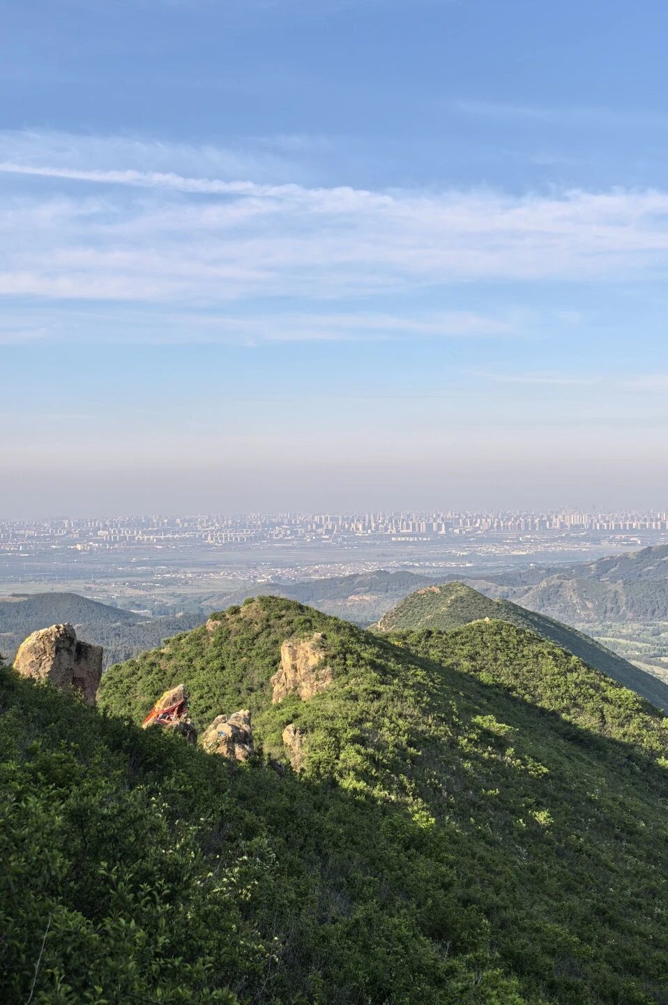 大青山在春天换上绿装。沿着山路向上,两旁的树木吐出新绿,登高望远,城市的轮廓与山体的绿意交织在一起,视野开阔又舒服。