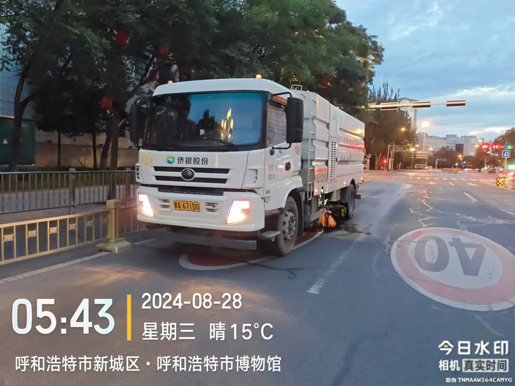 除了人工保洁外,在机械作业方面新城区环境卫生服务中心同样展现出了强大的实力。一辆辆洗扫车、洒水车交替作业,在校园周边的道路上有序地行驶着。洗扫车的扫帚飞速旋转,将路面上的垃圾和灰尘一扫而空;洒水车则喷洒出细密的水雾,不仅降低了空气中的灰尘含量,还为炎热的天气带来了一丝清凉,为校园周边的环境卫生提供了有力的保障。