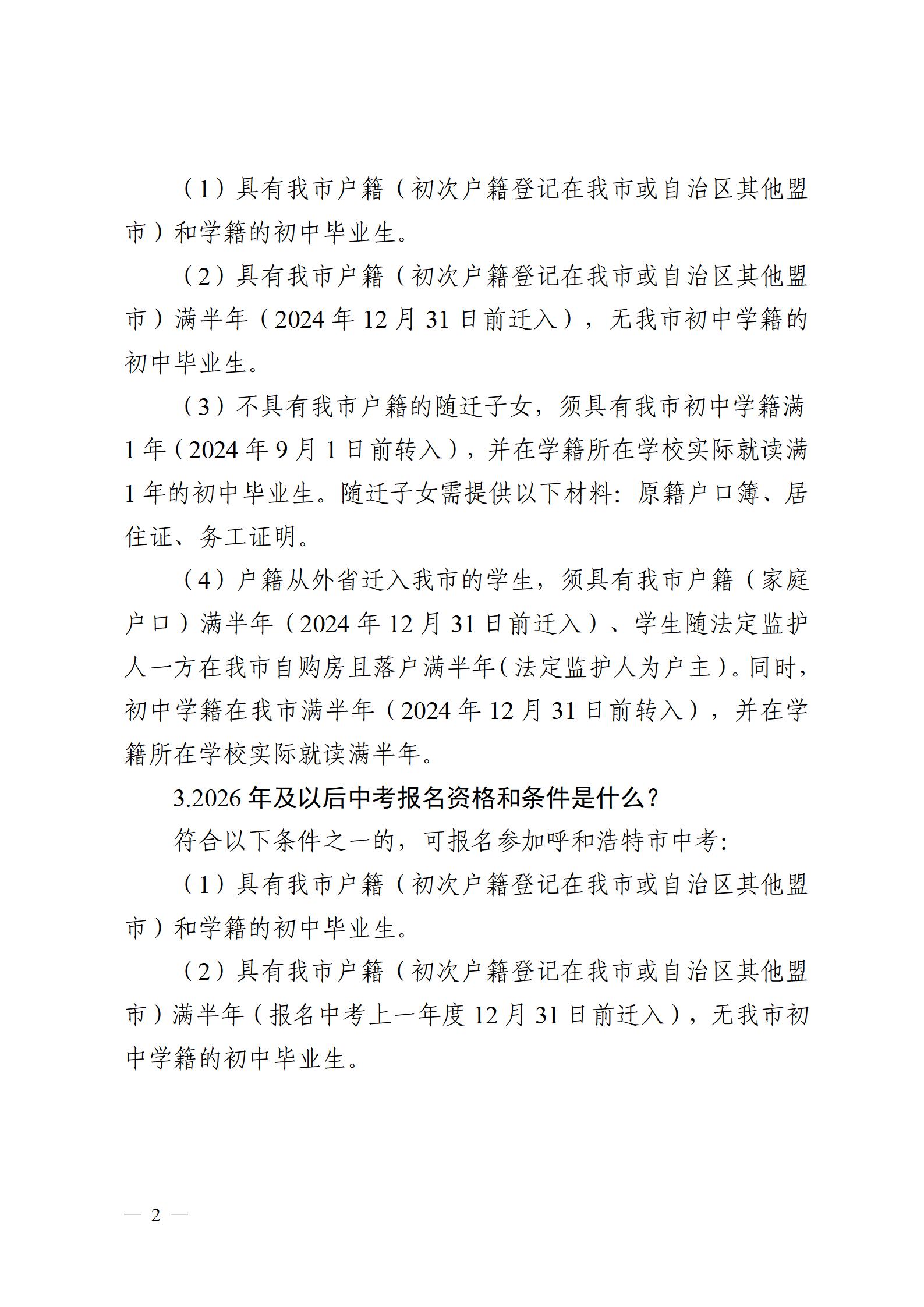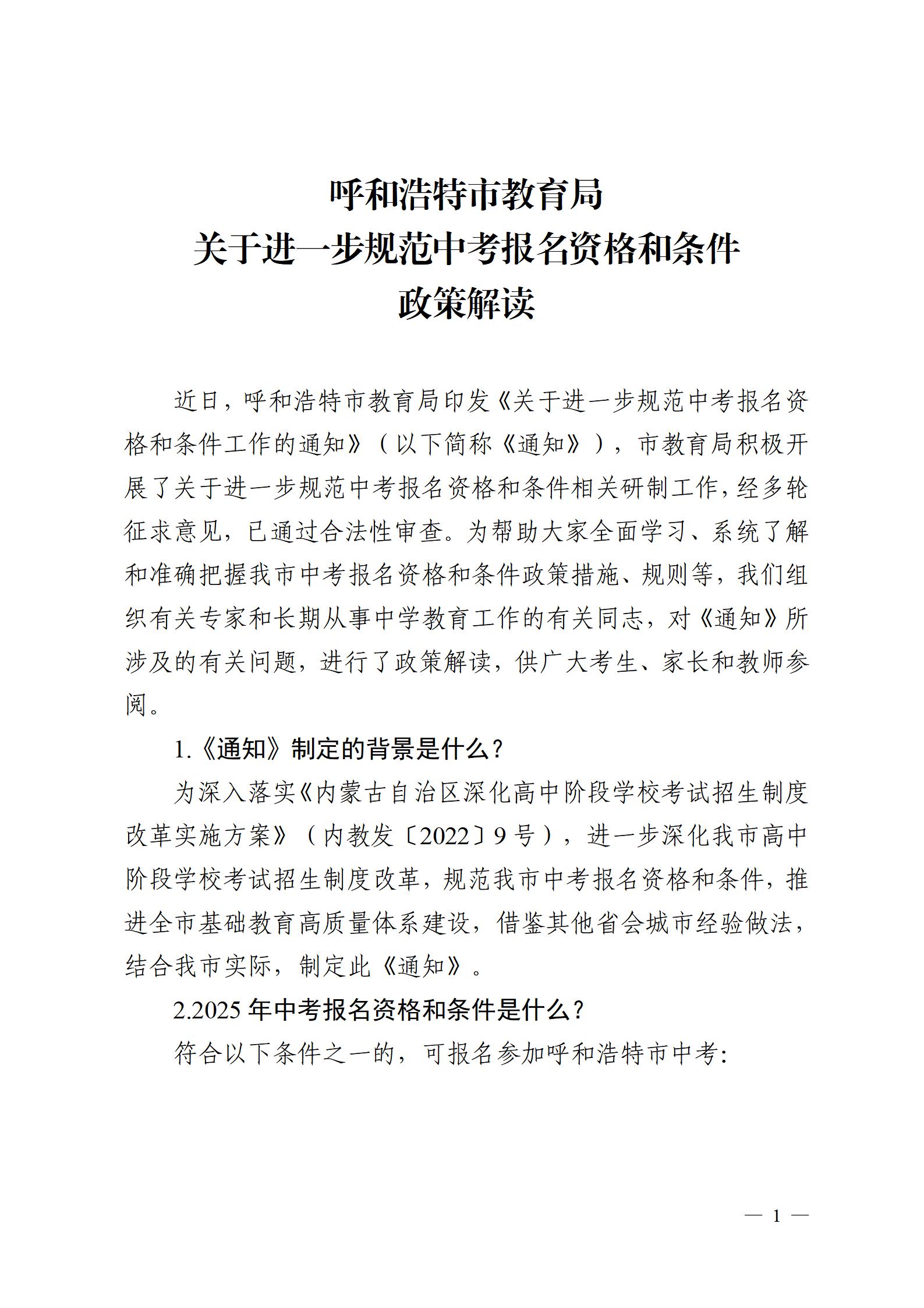 呼和浩特市教育局关于进一步规范中考报名资格和条件政策解读