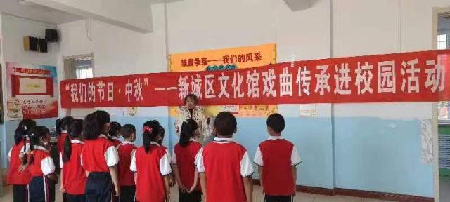 2022年,新城区文体旅游广电局建立了传统文化进校园常态化工作机制,开展的各项活动与传统节日相结合,不断丰富课件内容,注重表演类项目的宣传展示和实践。在新城区所属多所学校开展了戏曲进校园活动,进一步促进了中小学生全面健康成长,延伸公共文化服务范围,提升公共文化服务品质,为学校“双减”工作赋能,丰富活跃了校园文化生活。