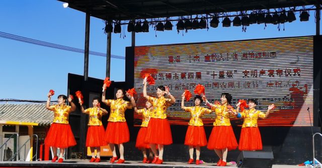 9月23日一大早,欢快的锣鼓声和欢笑声吸引来了附近各村的村民,村民们早早来到村中心广场等待观看演出,热烈欢快的开场舞蹈《迎盛世举金杯》拉开了文艺演出的序幕,新城区文化馆乌兰牧骑小分队带来了极富地方特色的二人台《挂红灯》、民歌对唱《双山梁》,还有诙谐欢乐的歌舞戏《抬花轿》等节目把演出推向高潮。整场演出内容丰富形式多样,歌曲、舞蹈、独唱、戏曲一一精彩呈现。演出在生盖营村文艺队的旗袍秀《祝福祖国》节目中落下帷幕。精彩的表演吸引了众多城乡群众参与本次农民丰收节,大家兴高采烈地观看文艺演出、观赏书画家现场挥毫创作、品尝购买农副产品,参观生盖营村的村容村貌,购买时令蔬果。共同体验丰收的喜悦。
