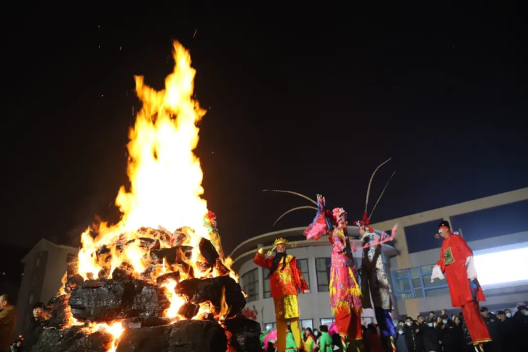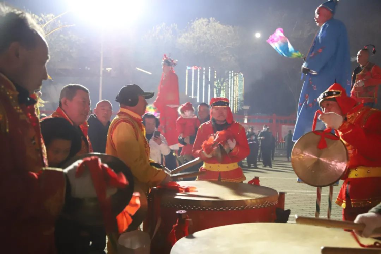 鼓槌挥动,锣钹铿锵,旺火升腾,幸福洋溢。活动现场,独具特色的戏曲高跷,热闹非凡的传统杂耍、别出心裁的秧歌轮番上演……各色花脸扮相浓妆艳抹,步伐妖娆,在锣鼓助阵下尽展身手。