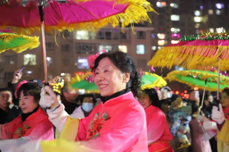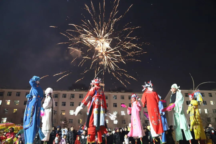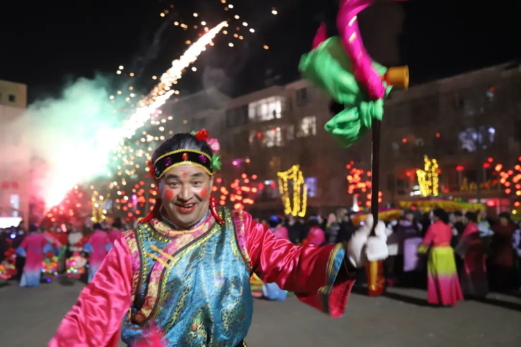 从四面八方汇聚而来的群众,个个笑逐颜开、喜气洋洋、鼓劲助威,争相观看民俗社火秧歌表演。欢呼声、助威声此起彼伏,欢声笑语与绚烂烟花一同装点了这个美满的上元夜。