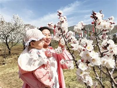 走进红山口村,千余亩的杏花林花满枝头,雪白或粉嫩的花瓣在春日暖阳的映照下,形成一片花的海洋。前来赏花的市民沉醉于繁花似锦的杏花林中,拍照、留影,欢声笑语不绝于耳,呈现出一派游人如织、杏花醉人的喜人景象。“踏青赏花是春天必不可少的活动,我今天特意带着女儿一起来赏杏花,呼吸新鲜空气,心情非常舒畅。这里的杏花特别美,希望大家都过来转一转。”4月18日,市民赵雅琴特意带着9个月大的女儿来看杏花。