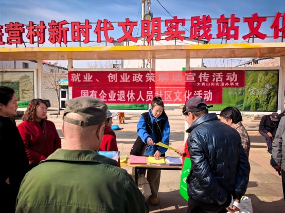 为深入落实就业创业扶持政策,提升辖区村民对政策的知晓度与参与度,3月20日,大青山街街道办事处在生盖营村新时代文明实践站文化广场,同步开展就业创业政策解读宣传与国有企业退休人员社区文化活动,为村民送上政策“大餐”与文化“盛宴”。