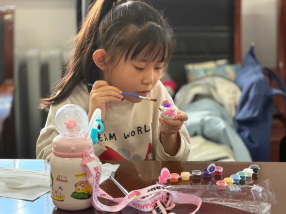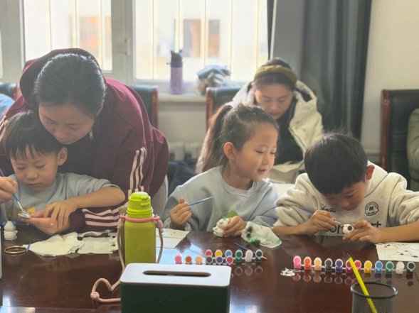 活动当天,在温馨的氛围中,沉浸式绘本欣赏环节率先开启。工作人员精选优质儿童绘本,通过生动的讲述、趣味的互动,带领孩子们走进奇妙的故事世界,让孩子们在聆听与感悟中汲取创作灵感,感受文字与画面的独特魅力。绘本欣赏结束后,备受期待的石膏娃娃彩绘环节正式拉开帷幕。工作人员为孩子们分发纯白石膏娃娃、画笔、颜料等工具,孩子们早已迫不及待,纷纷化身“小小艺术家”,发挥天马行空的想象力,搭配斑斓色彩,勾勒灵动线条。家长们也主动参与其中,与孩子共同调色、创作,现场充满欢声笑语。