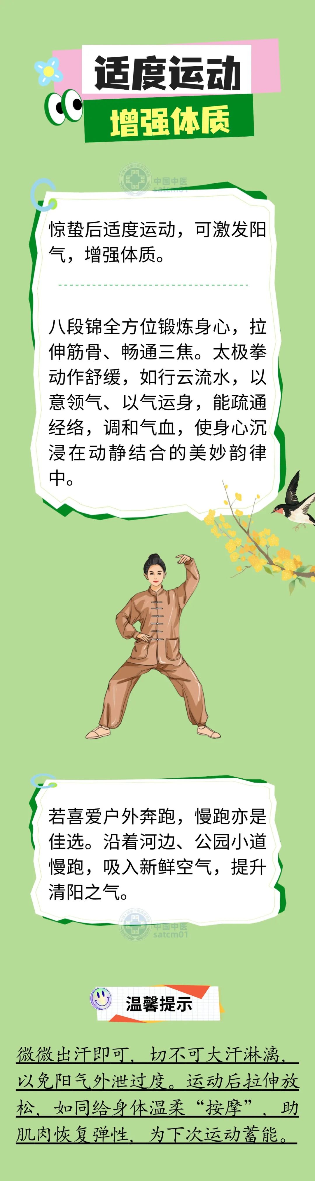 惊蛰时节,时常会有冷空气来袭,出现阴雨绵绵的天气,此时寒湿较重,人体容易外感寒湿之邪,出现怕冷、周身困重乏力、肢体酸痛、鼻塞流涕、咳嗽等表现,平时除了要散寒化湿,还要学会健脾补气,让人体有足够的正气,抵御外界的寒湿邪气。