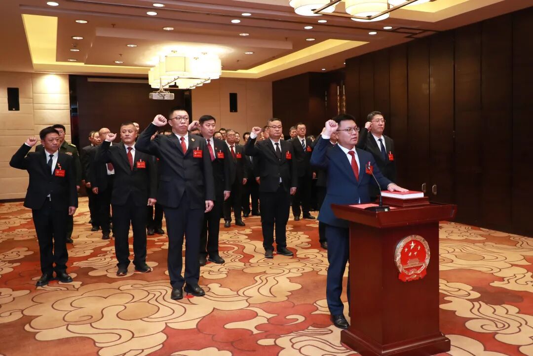 会后,全体新当选国家机关工作人员集体向宪法进行了宣誓。
