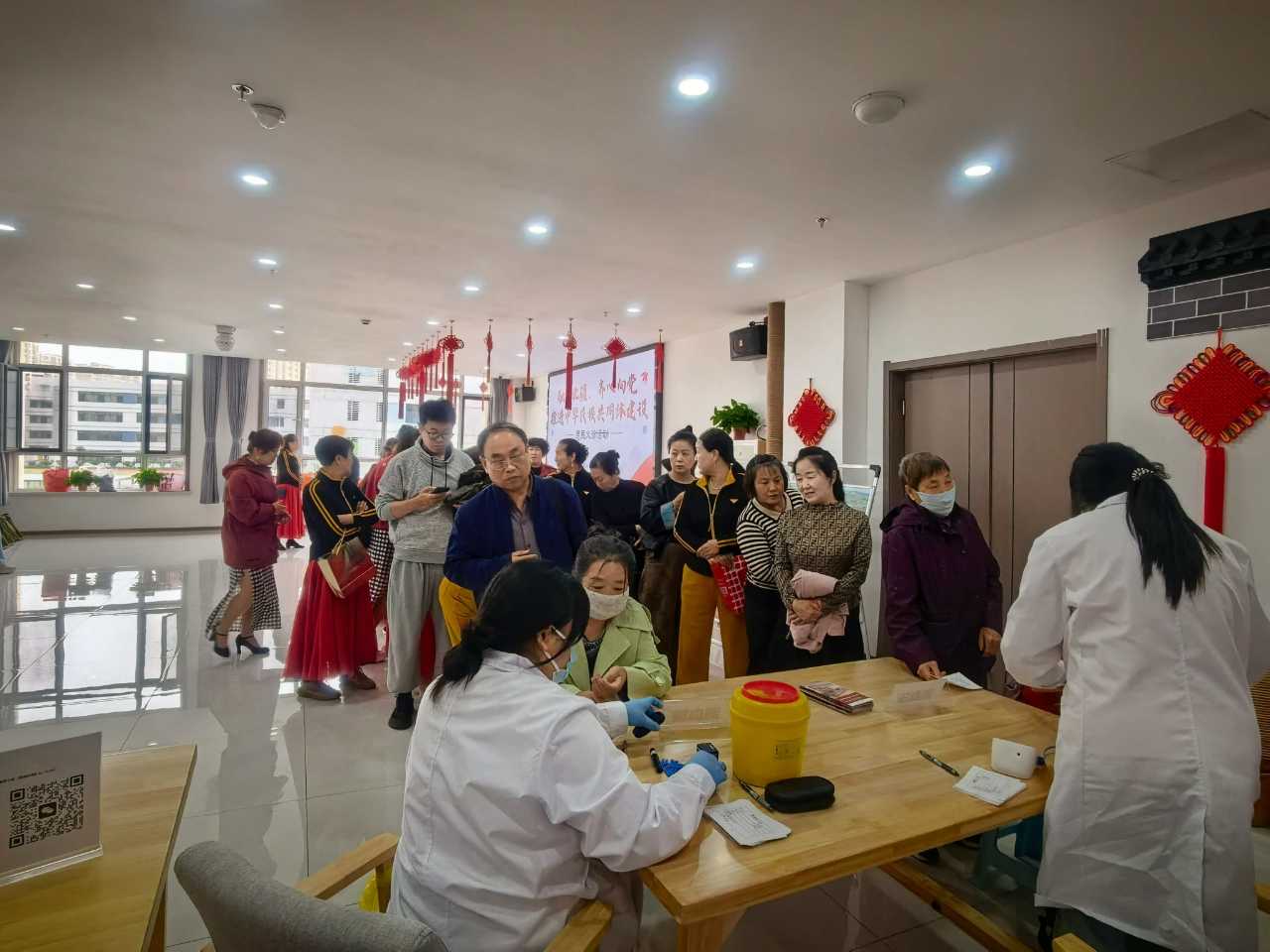 除了健康讲座,活动还为居民免费提供血糖、血压检测服务。医护人员认真细致地为每一位前来检测的居民测量数据,并耐心解答他们提出的各种健康问题,根据检测结果给予专业的建议和指导。