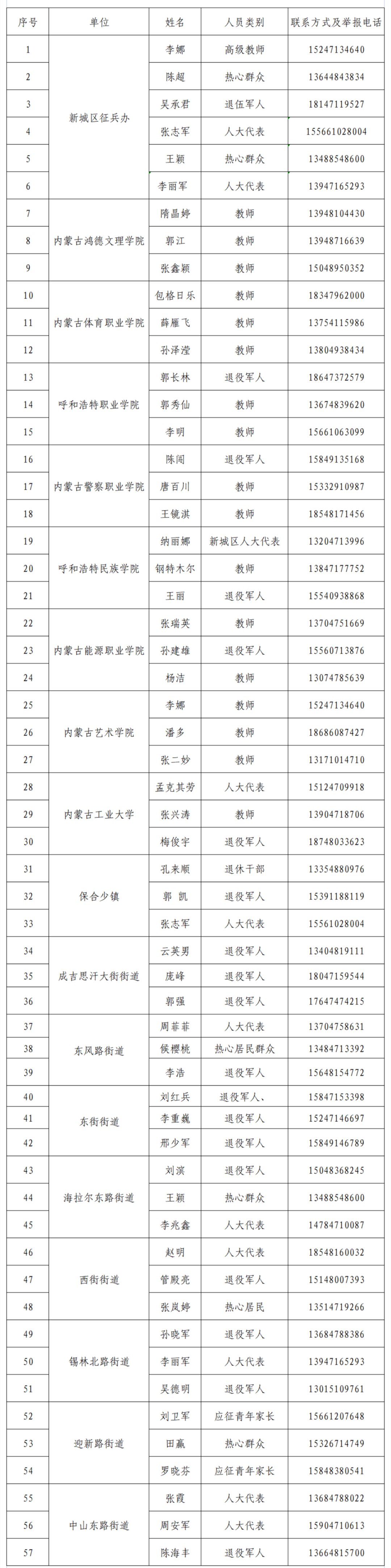 以上廉洁征兵监督员作为兼职监督人员,履行群众监督职能,配合有关职能部门重点监督征集部门和征兵工作人员廉洁征兵履职情况及时发现、指出并参与纠治发生在群众身边的基层征兵“微腐败”“暗腐败”问题。广大群众如发现任何征兵违法违纪线索或廉洁征兵问题,可直接向上述廉洁征兵监督员进行举报反映。