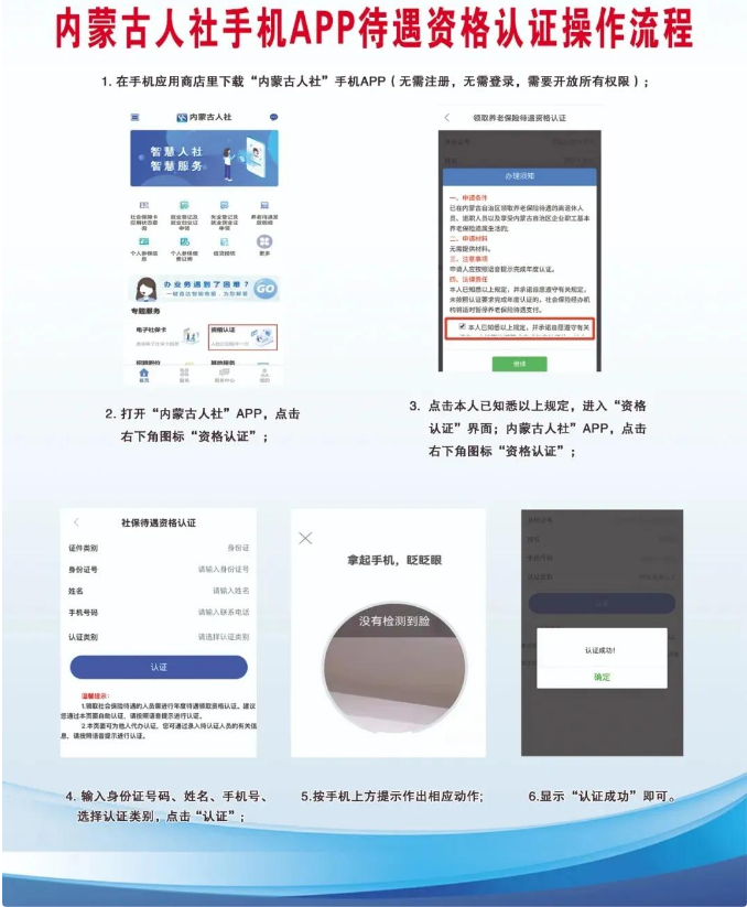 1、认证工作采取线上自助认证方式,认证人员或亲属通过下载“ 内蒙古人社 ”APP 进行认证。如本人无法完成认证的,可由亲属辅助完成认证。