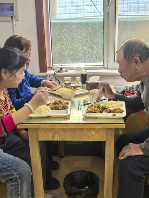 在社区吃饭的老人还能和老朋友相约一起用餐
