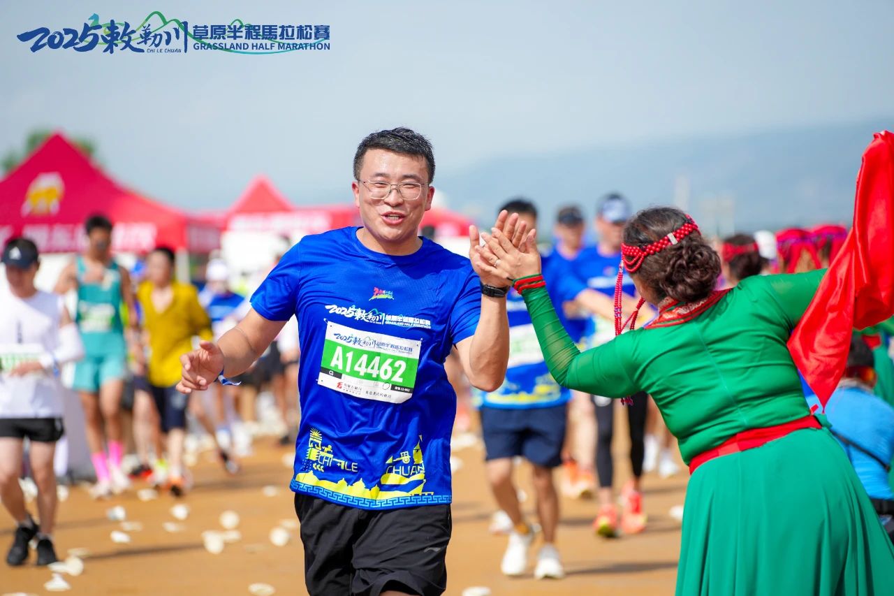 连续三年参赛的呼和浩特市民刘志强以1小时48分完赛。他表示:“今年补给站很丰富,降温海绵也增加了,服务的志愿者也更专业,比赛氛围那是相当给力。”作为资深跑友,他特别称赞赛道设计:“草原上的赛道平坦宽阔,起伏很小,既保护膝盖又能近距离观赏花海。”
