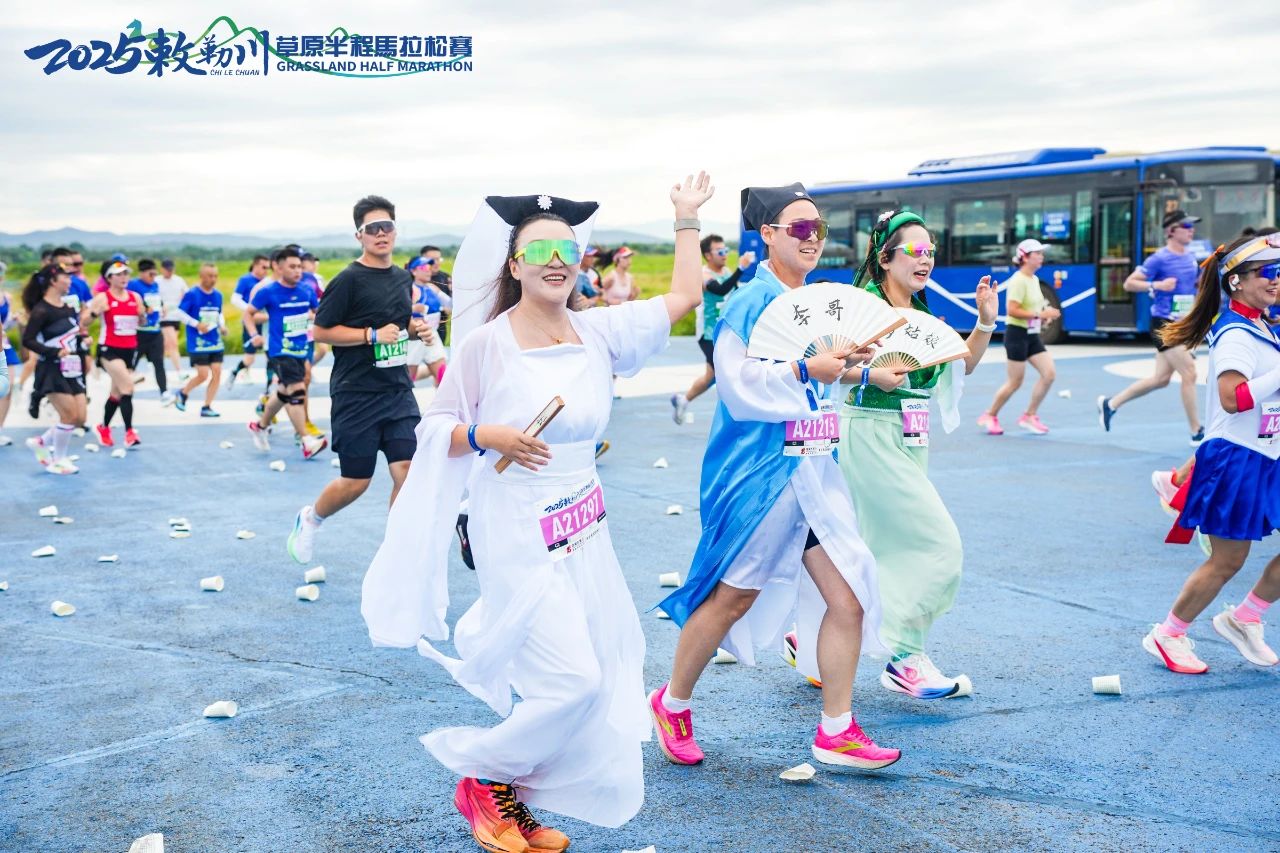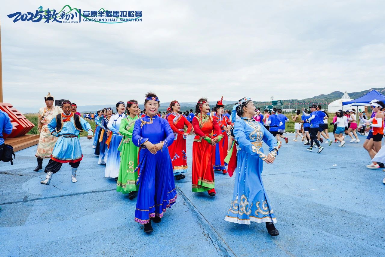 八月正值草原花期,草原赛道如诗如画,沿途格桑花、马兰花等野花竞相绽放,与近在咫尺的大青山构成壮阔画卷。组委会特别设置4处“文艺加油站”,马头琴演奏、安代舞表演等轮番上演,为选手加油助威。“看到身着民族盛装的叔叔阿姨们为我们加油,这种奔跑在故乡草原的感觉太震撼了!”本地跑者王雪松感慨道。