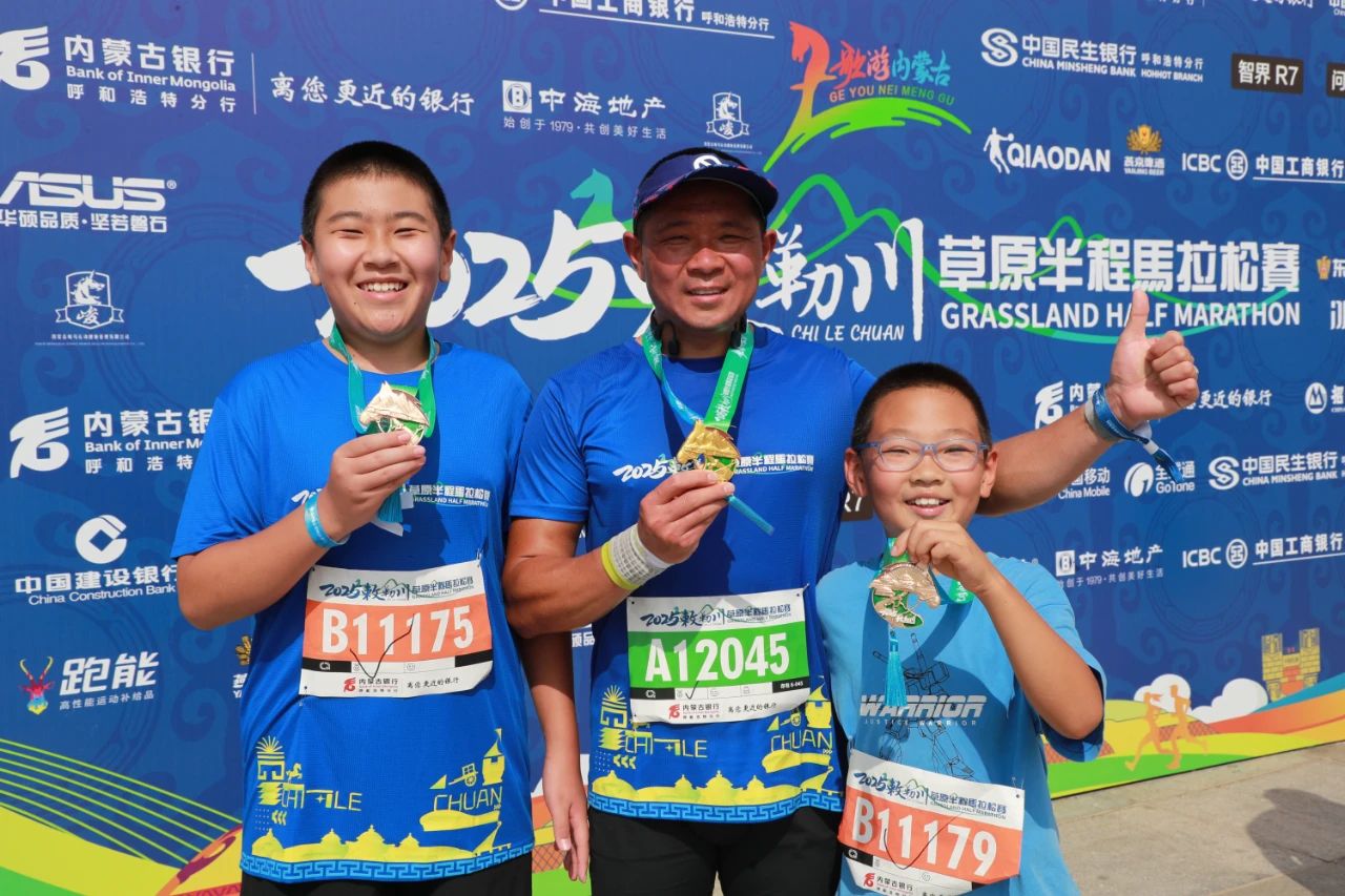 首次参与的山西跑者李莉专程为体验草原马拉松而来。“原以为在草原跑步大太阳晒着会吃力,但今天20℃的阴天实在太友好了!”她兴奋地展示完赛奖牌——金色、绿色为主色系的骏马浮雕,“我还看到牧民骑着蒙古马为我们加油,这种创意太赞了!”她表示明年要带跑团好友继续参赛。