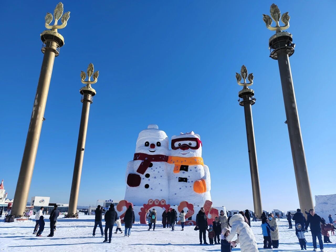 活动以“天苍苍、野茫茫”的草原文化为核心,依托敕勒川自然景观,打造集冰雪观赏、运动体验、文化互动、美食消费于一体的冬季文旅项目。现场设有核心地标区、打卡造景区、雪上狂欢区、冰上娱乐区、冰雪滑梯区及综合服务区六大功能区域,游客可观赏高达20米的巨型雪人、草原冰雪瑞士卷、雪雕等景观,体验雪地摩托车、雪地转转、冰车、冰滑梯等冰雪运动项目,与麋鹿、小矮马等萌宠互动,体验草原文化在冰雪中焕发的新光彩。活动现场还设有暖冬美食区与冰雪主题文创展示区,提供本土品牌饮品、特色小吃及纪念品,营造沉浸式草原冬日体验,让游客可以将草原冬日风情带回家,使“冷资源”持续释放“热效应”。