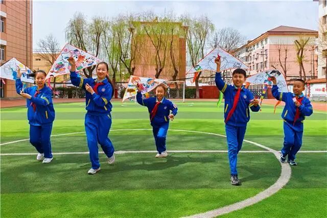 绘制完成后,孩子们奔向操场放飞亲手制作的风筝。奔跑、放线、调整,当一只只纸鸢乘风而起、扶摇蓝天,现场爆发出阵阵欢呼。