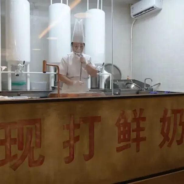 或者在牛奶水龙头旁,采用侧拍角度,把水龙头、流出的牛奶和人物的动作都拍进画面,让照片充满故事感。