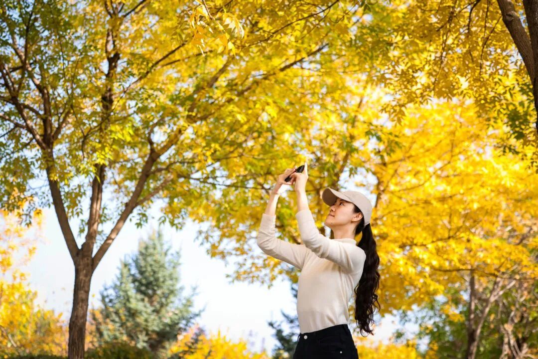 “早上送孩子上学,路过公园,一抬头全是金黄的树叶,随手拍了张照片发朋友圈,半小时就收到五十多个赞!” 市民赵女士一边笑着刷新手机,一边开心地说道。